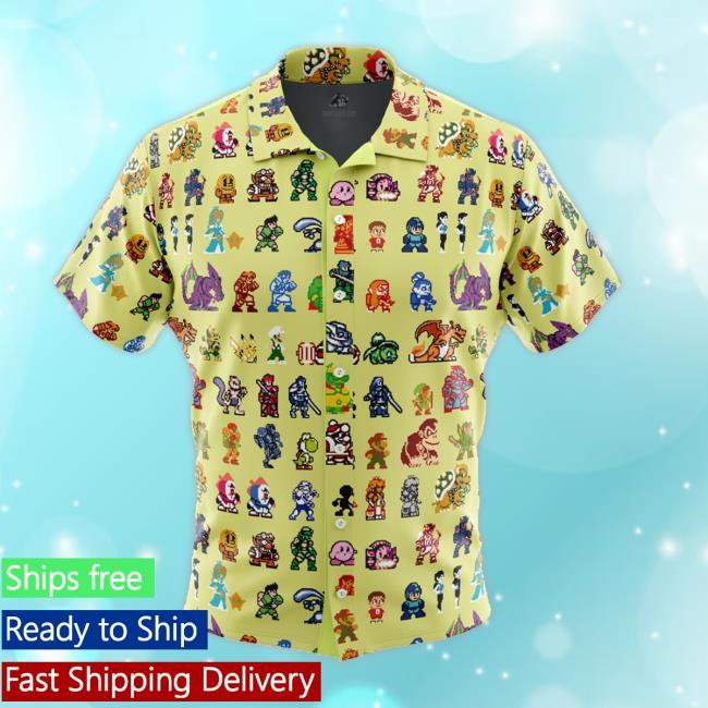 Official Animebape Ultimate Roster Super Smash Bros Button Up Hawaiian Tee